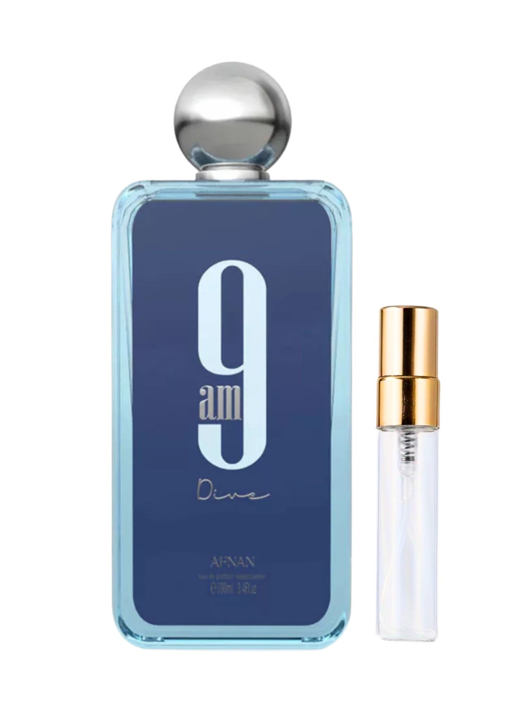 Az Afnan 9AM Dive egy friss, fás unisex illat, mely 2022-ben került a piacra. Egy citromos, mentás illat, melynek fűszerességét, és gyümölcsösségét is érezni lehet. Friss illatának köszönhetően, kitűnő nyári választás.