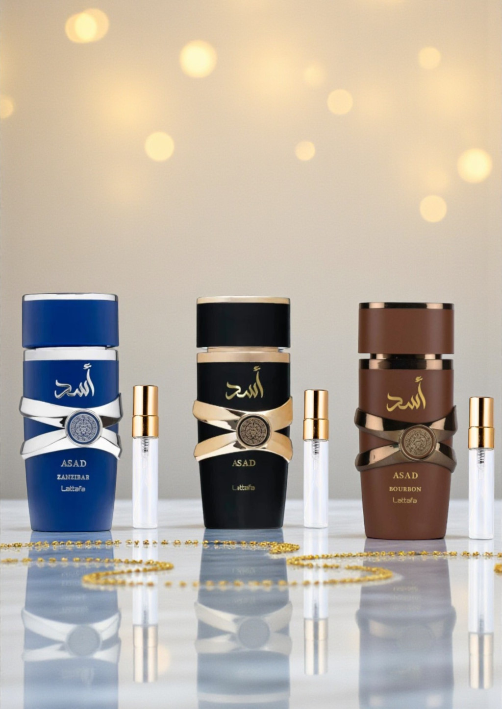 Az Asad illatvonal az arab parfümgyártás egyik legnépszerűbb és legkarakteresebb szériája, amely gazdag, tartós és férfias kompozícióiról híres. Ez a trió szett bemutatja az illatcsalád sokoldalúságát, a mély fűszerestől a kókuszos frissességig.